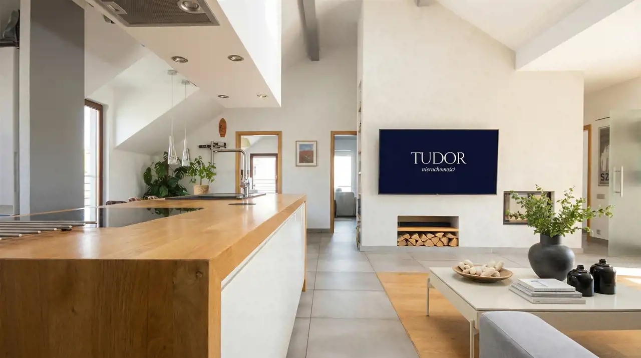 - Salon z otwartą, słoneczną kuchnią i jadalnią,