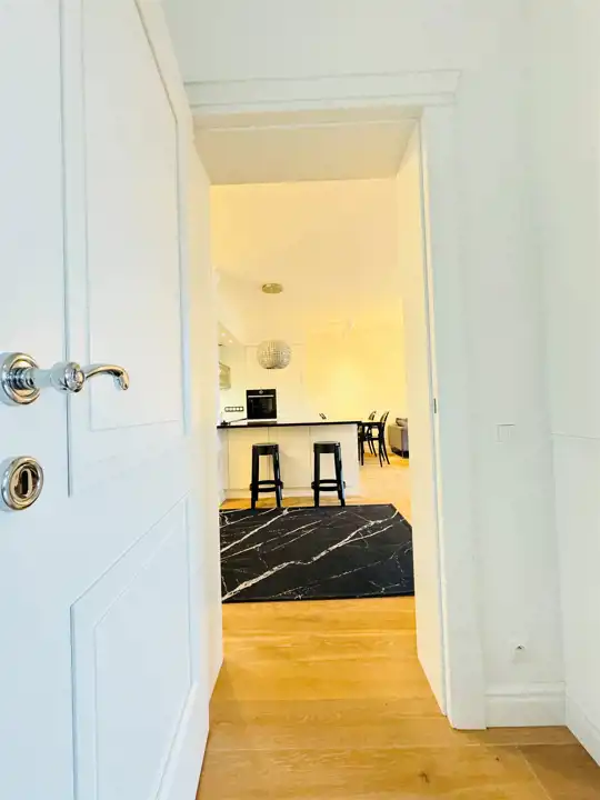 The apartment is situated in the second line of buildings, ensuring peace and quiet while still offering immediate access to the city center and nearby green areas. It perfectly combines urban lifestyle with a sense of intimacy and comfort.