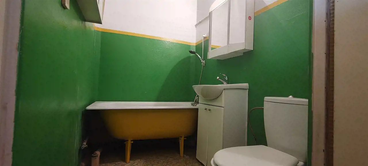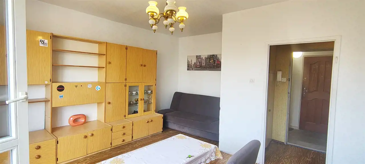 Powierzchnia użytkowa 31 m2, na którą składa się: salon o powierzchni 23 m2, kuchnia o powierzchni 4,5 m2, łazienka z wanną, umywalką i wc, korytarz z meblościanką. Na podłogach jest linoleum, co ułatwia położenie paneli lub desek. Do mieszkania jest przynależna piwnica.