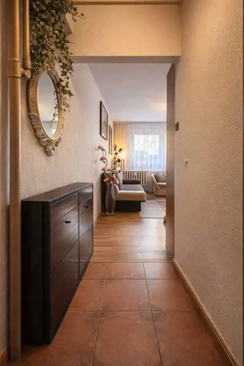 Lokal jest w pełni umeblowany oraz wyposażony w sprzęt AGD, który pozostaje w cenie. Dzięki temu możliwe jest zamieszkanie od razu po zakupie – bez dodatkowych nakładów finansowych.
