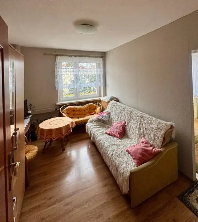 Mieszkanie o powierzchni 37,45m2 znajduję się na pierwszym piętrze składa się z pokoju przedzielonego ścianką co daje nam możliwość korzystania jako mieszkania 2 pokojowego, kuchni oraz łazienki. Kolejnym atutem mieszkania jest ułożenie względem stron świata, dzięki czemu mieszkanie jest jasne i przytulne przez większą część dnia bardzo słoneczne. Opłaty za czynsz na dzień dzisiejszy są w okolicach 500-600zł. Mieszkanie jest sprzedawane z pełnym wyposażeniem.