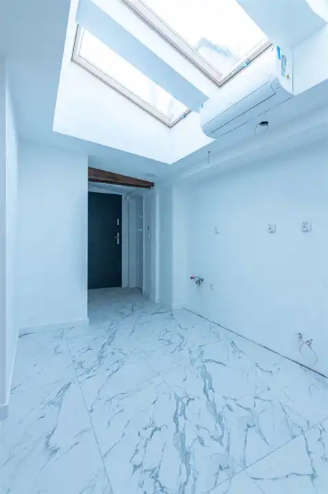 pomalowane na biało, rozprowadzone instalacje: elektryczna i wodno – kanalizacyjna. W kuchni i w łazience wyprowadzone, w zależności od projektu, wszystkie podłączenia pod zlewy, umywalki, wanny lub kabiny prysznicowe, pralki i płyty, itp. Drzwi wejściowe antywłamaniowe, ognioodporne.