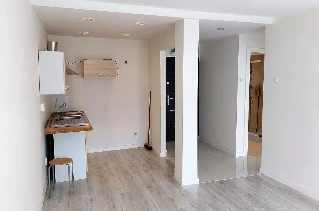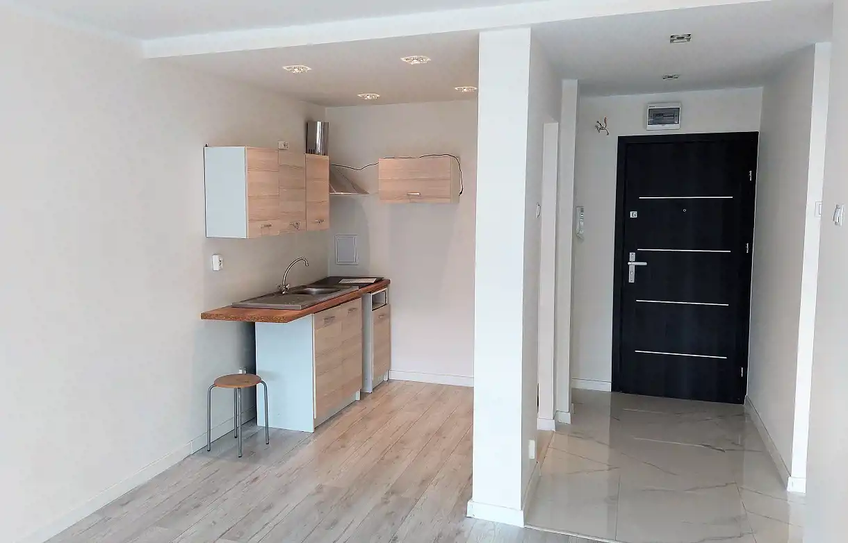 W pokojach i przedpokoju ściany gipsowane oraz malowane. Okna PCV z wystawą na południe. Podłogi w pokojach z paneli, w łazience i holu z terakoty. Na wyposażeniu pozostają w kuchni meble oraz płyta indukcyjna. Przyłącze do pralki w aneksie kuchennym.Łazienka w modnych płytkach, z kabiną prysznicową oraz kompaktem WC w zabudowie.