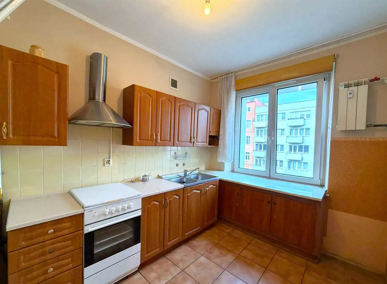 Mieszkanie składa się z salonu z bezpośrednim wyjściem na balkon, oddzielnej kuchni z oknem, sypialni, przedpokoju, a także łazienki z wanną wraz z WC. Do mieszkania przynależy piwnica o powierzchni 6m2. Budynek usytuowany jest wśród niskiej zabudowy.