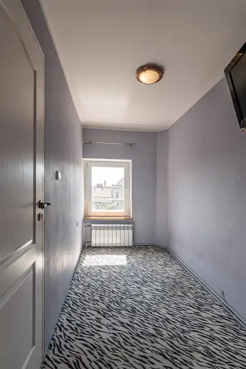 Mieszkanie powstałe z adaptacji poddasza - pokoje przechodnie. Ekspozycja okien południowa. Lokal składa się z pokoju dziennego, kuchni w formie aneksu, sypialni, garderoby, łazienki i przedpokoju .