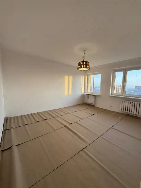 Stan - do remontu, mieszkanie jest wolne od mebli i sprzętów, gotowe do prac adaptacyjnych. Pierwsze zdjęcia są poglądowe - wykonane na zlecenie właściciela u profesjonalnego grafika z zachowaniem realnego metrażu mieszkania do zagospodarowania. Rzeczywisty stan obrazują zdjęcia na samym końcu. Po opróżnieniu mieszkania ściany zostały pomalowane na biało.