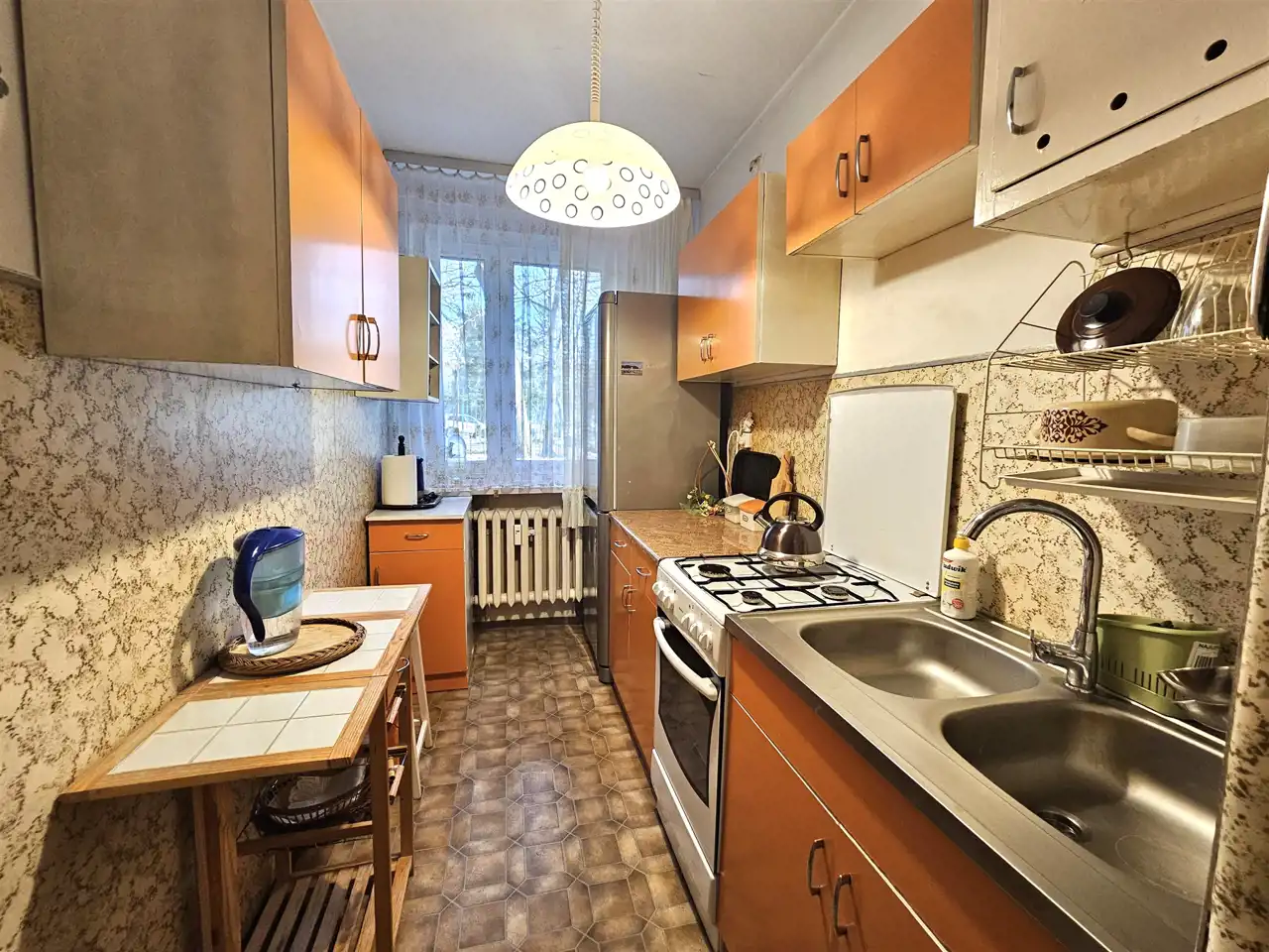 Mieszkanie o powierzchni 47,65 m2. Składa się z przestronnego salonu, sypialni, oddzielnej kuchni z oknem, łazienki z wanną i WC oraz korytarza. Ogrzewanie i ciepła woda z sieci miejskiej. Mieszkanie ciepłe. Okna wystawione na dwie strony świata. Do mieszkania przynależy piwnica. Czynsz zawiera zaliczki na ogrzewanie, ciepłą i zimną wodę. fundusz remontowy oraz śmieci. Pod budynkiem dostępne parkingi dla mieszkanców.