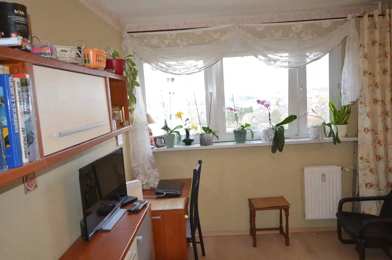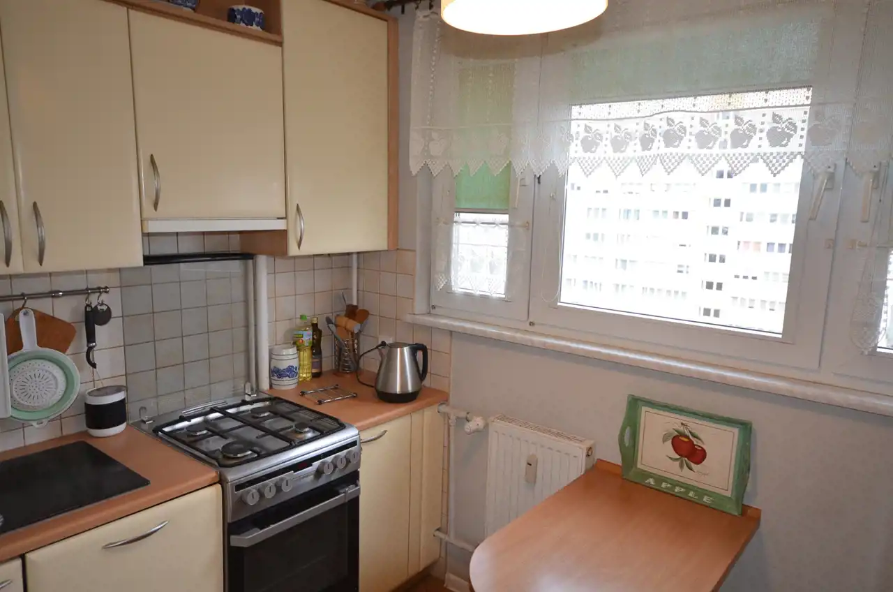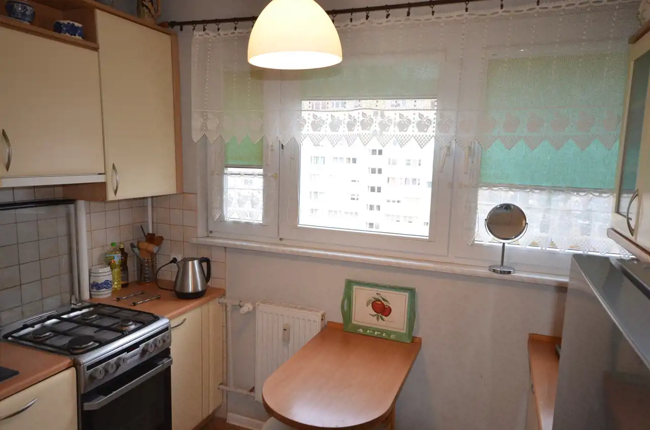 Na sprzedaż mieszkanie 2 pokojowe na os. Kaliny ( t.zw. leningrady) z ładnym widokiem na panoramę miasta. Z długiego przedpokoju wejścia do poszczególnych pomieszczeń ; Duży salon ok. 16m2 z wyjściem na balkon typu loggia , drugi pokój - sypialnia ok.10m2 . Jasna widna kuchnia w pełni umeblowana i wyposażona , łazienka razem z wc - kabina prysznicowa. Mieszkanie czyste i zadbane w standardzie powyżej średniej gotowe do wprowadzenia , przynależna piwnica. Budynek i klatka schodowa wyremontowane ( winda ) , zadbane otoczenie , miejsca parkingowe przy bloku. W bliskim sąsiedztwie ; markety, sklepy, szkoły, apteki, komunikacja miejska itp.