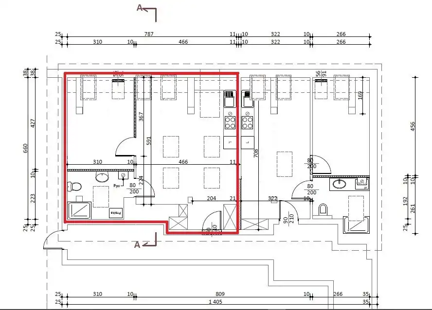 - pokój dzienny połączony z aneksem kuchennym 24,49 m2,