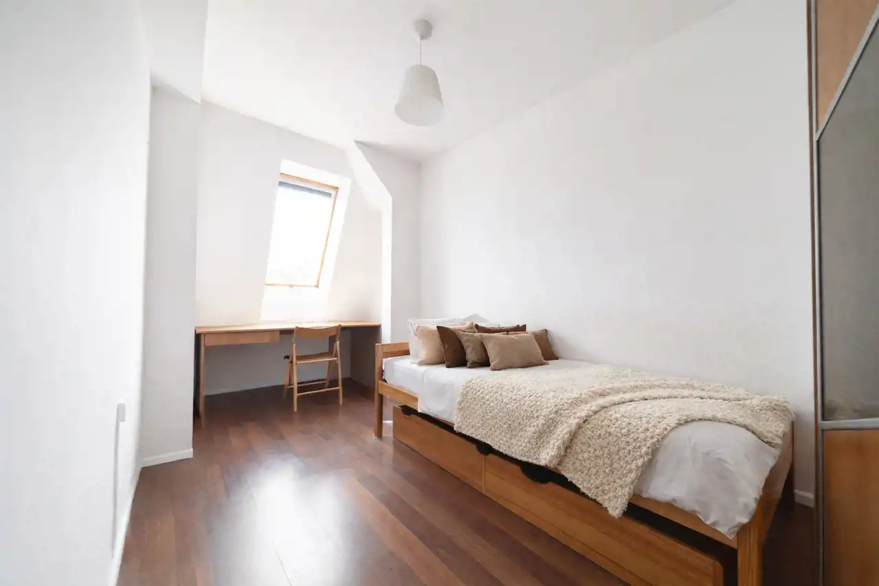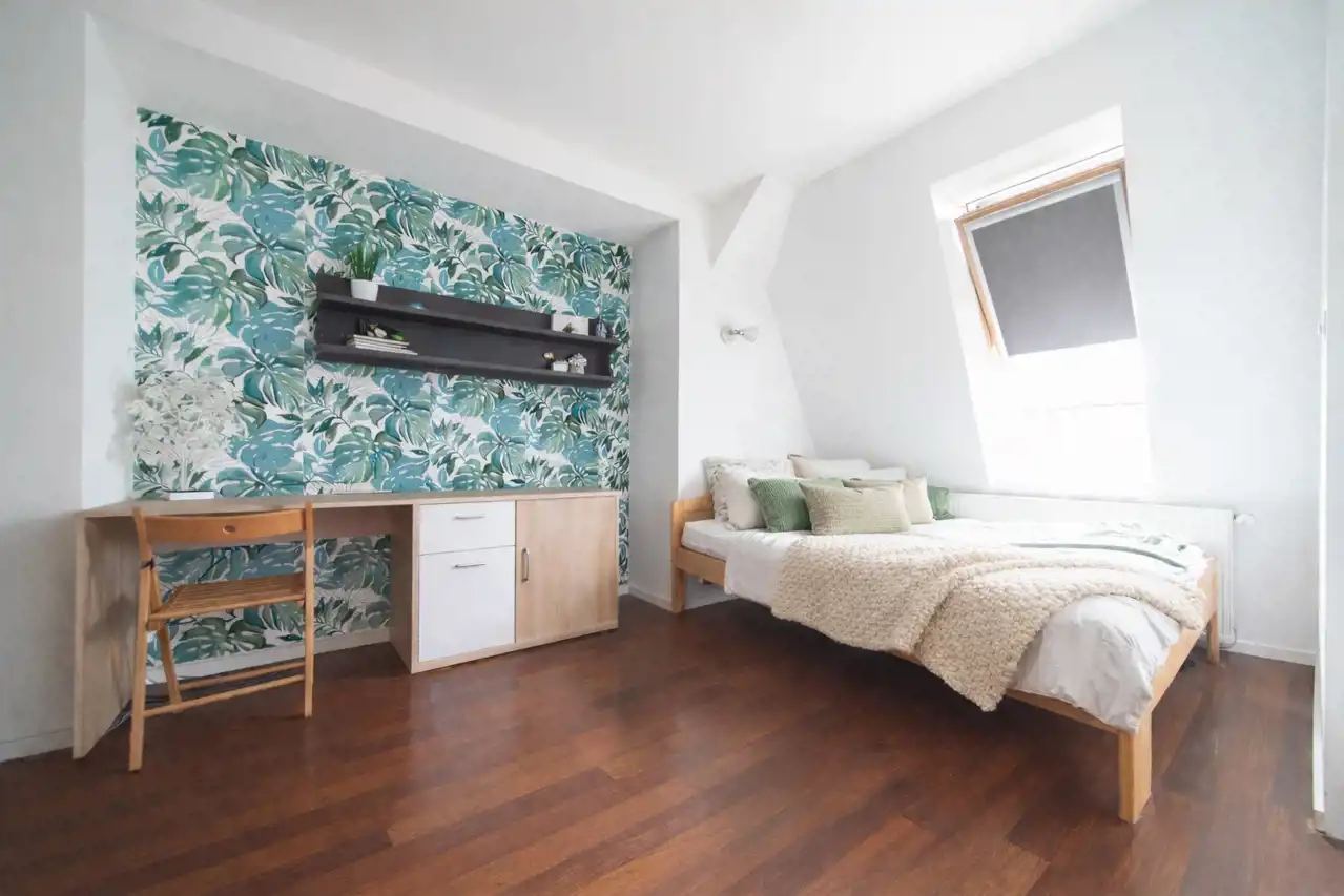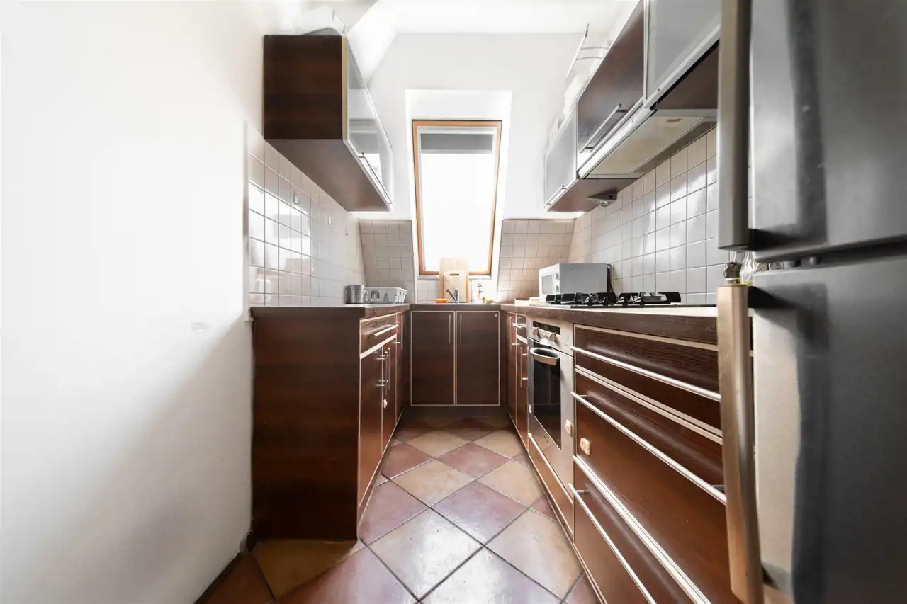 Nieinwazyjne skosy, prawidłowo wykonana adaptacja poddasza w postaci izolacji dachu. W kamienicy wymieniony dach, piony wodno-kanalizacyjne.