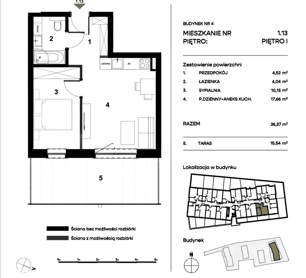 - Charakterystyka mieszkania 36.37 m2, 2 pokoje