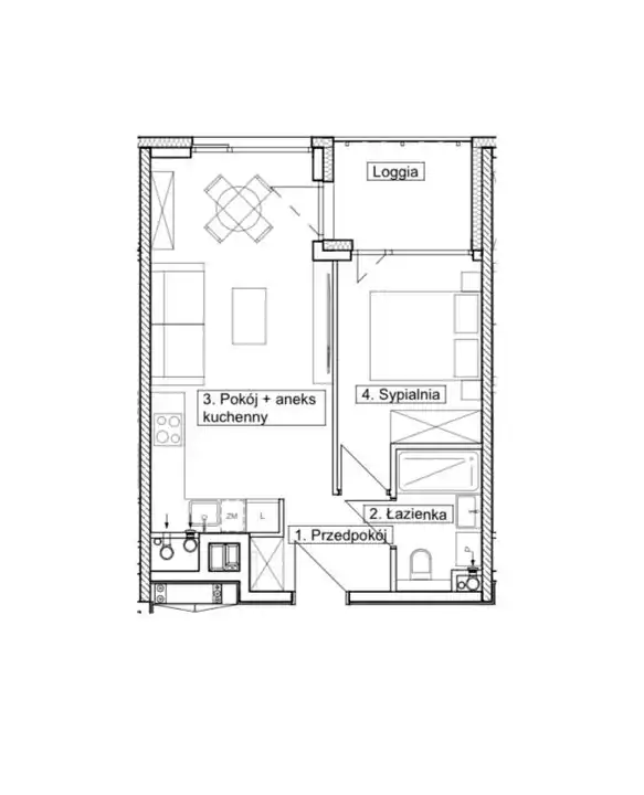 • loggia -4,19 m² Łączna powierzchnia mieszkania: 37,66 m²