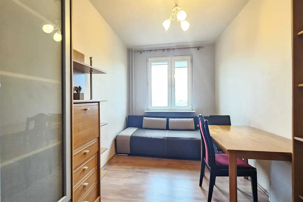 W cenie mieszkania pozostaje zabudowa kuchenna ze sprzętem AGD oraz w pokojach i przedpokoju umeblowanie.