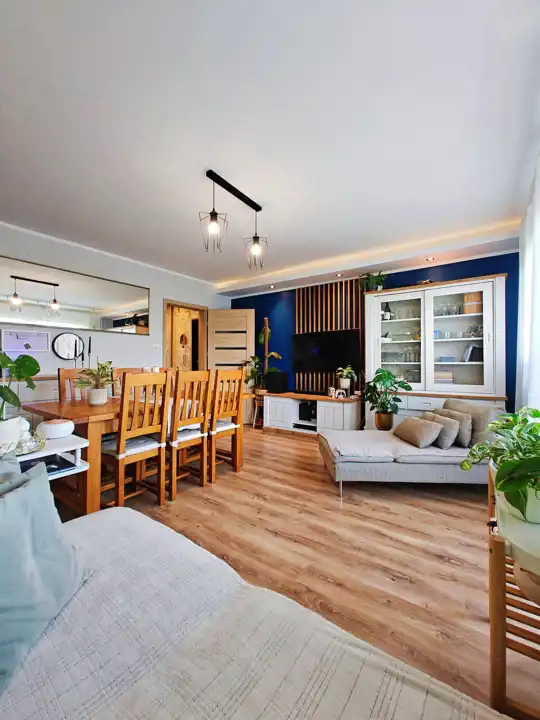 - Salon (21,5 m²) – przestronny i jasny, z wyjściem na duży balkon, gdzie można cieszyć się popołudniowym słońcem.