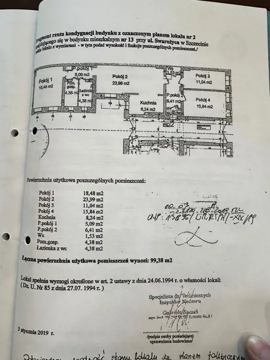 - Charakterystyka mieszkania 99.38 m2, 4 pokoje