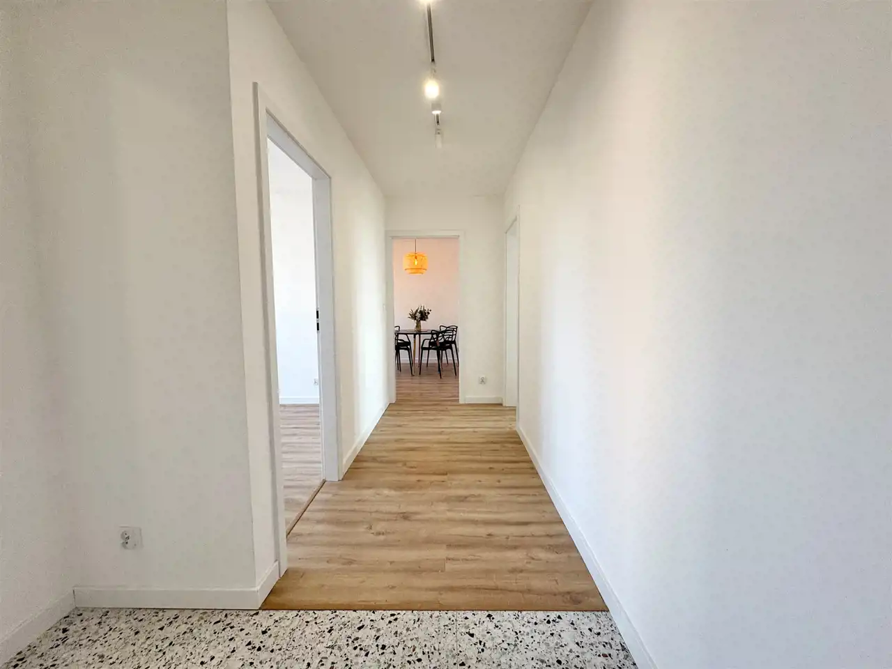 - nowe panele podłogowe oraz glazurę.