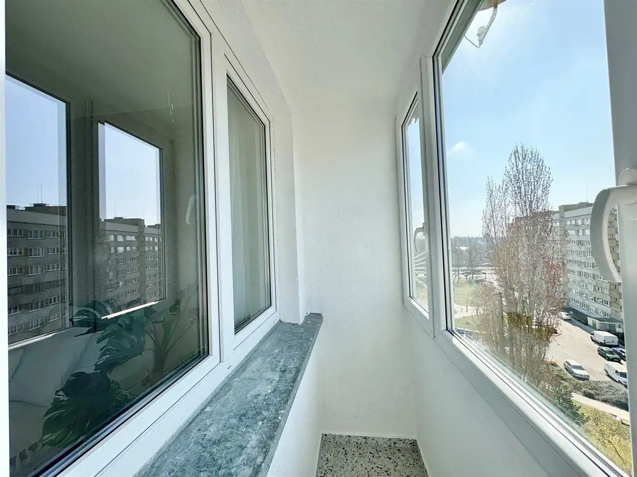 Mieszkanie jest dwustronne, bardzo ciepłe i słoneczne. Duże okna zapewniają doskonałe doświetlenie wnętrz i poczucie przestrzeni.