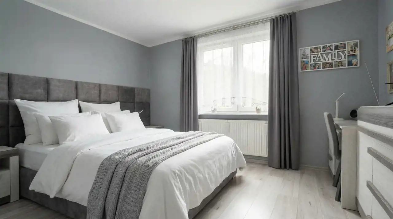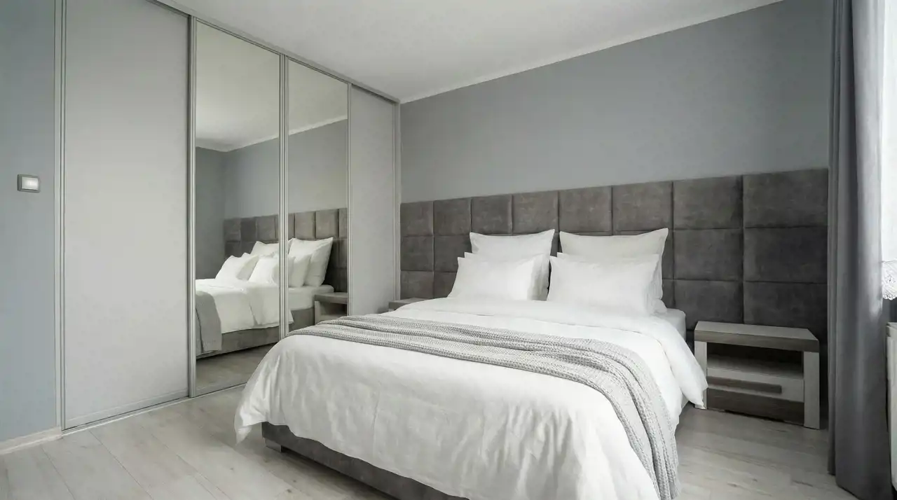 dużej sypialni z pojemną zabudową,