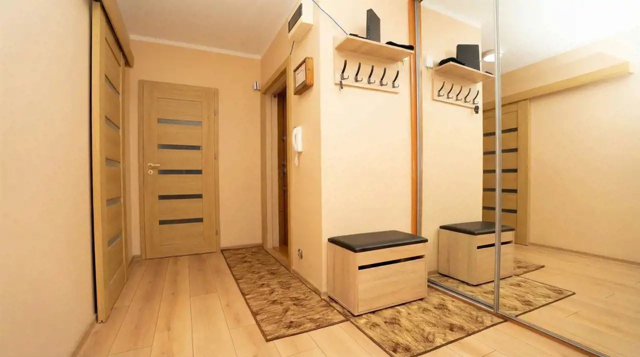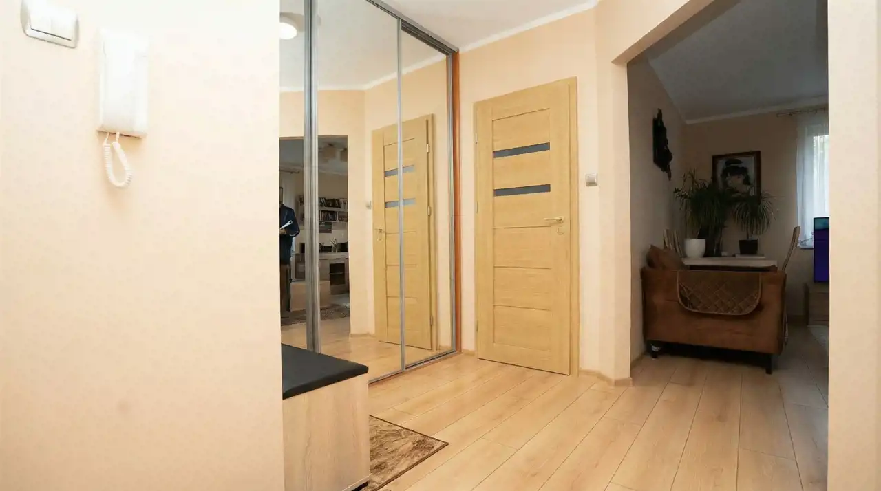 przestronnego przedpokoju z dużą szafą.