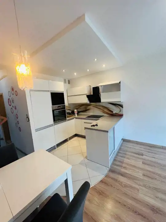 przestronnego salonu z aneksem kuchennym (kuchnia w pełni umeblowana i wyposażona),