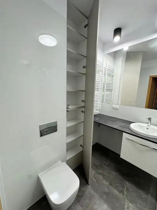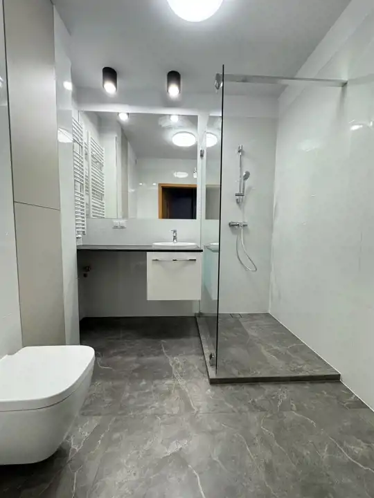 Łazienka została gruntownie przebudowana – wymieniono instalacje, kafle oraz całe wyposażenie. Wszystkie sprzęty są nowe, a wykończenie utrzymane w nowoczesnym i eleganckim stylu.