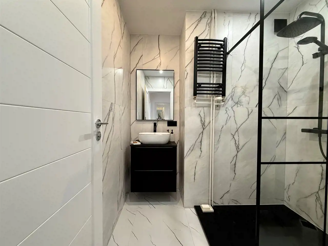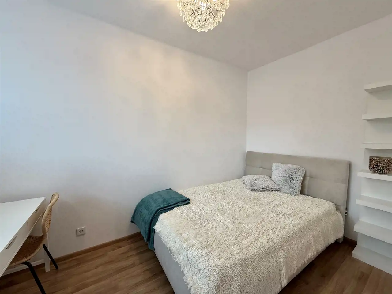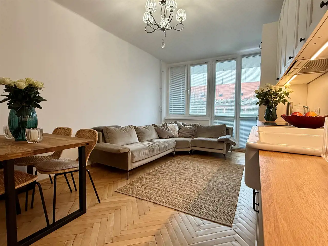 Mieszkanie składa się z salonu z aneksem kuchennym i wyjściem na balkon. Z salonu prowadzi wejście do jednej sypialni, a dodatkowo do dyspozycji są jeszcze dwa niezależne pokoje. W lokalu znajduje się łazienka z WC i kabiną prysznicową oraz wnęka na garderobę.