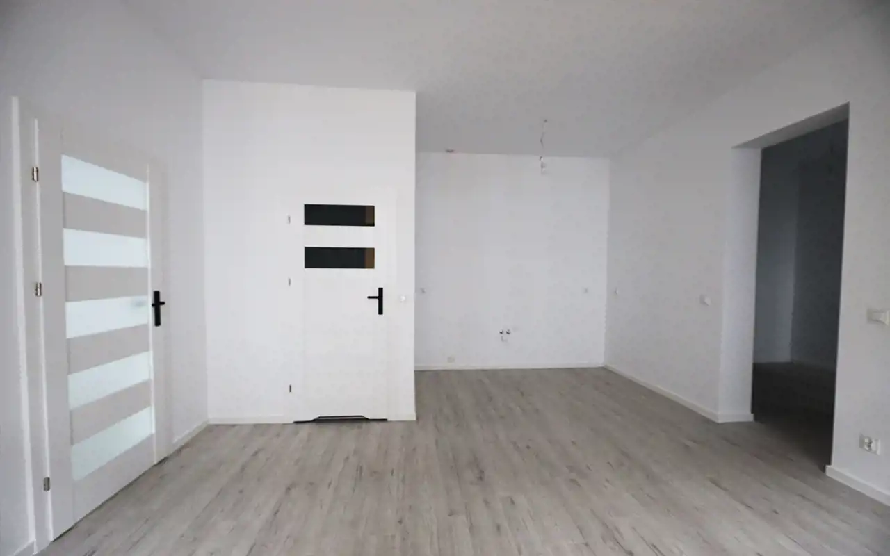 jasny salon z miejscem na aneks kuchenny z wyjściem na balkon – świetny punkt wspólny dla najemców,