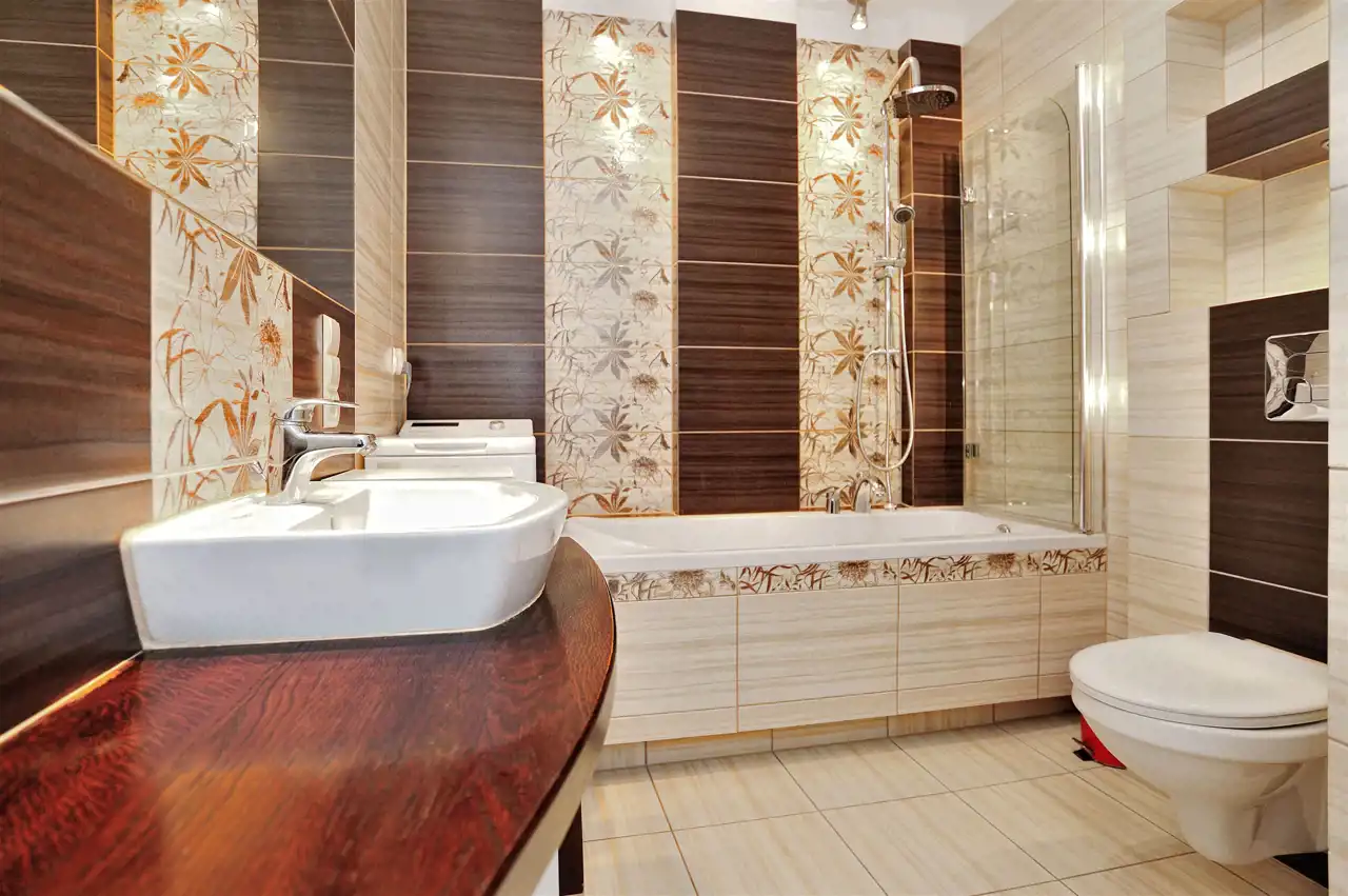 - Łazienkę wyposażoną w wannę z deszczownicą, szklaną osłoną prysznicową oraz WC