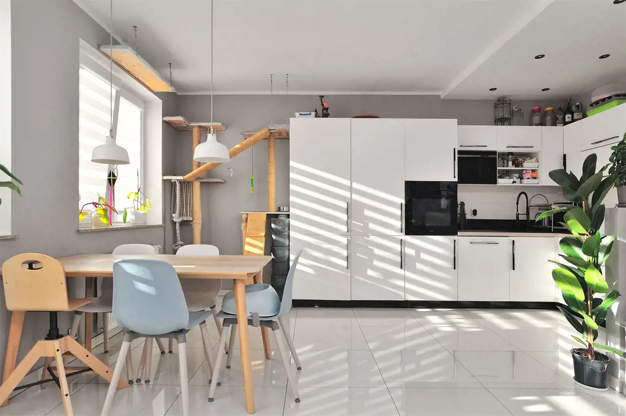 - Ekspozycja salonu na południe zapewnia naturalne światło przez cały rok. Kuchnia w pełni umeblowana wraz z sprzętem AGD w zabudowie: lodówka, zmywarka, piekarnik, mikrofalówka, kuchenka.