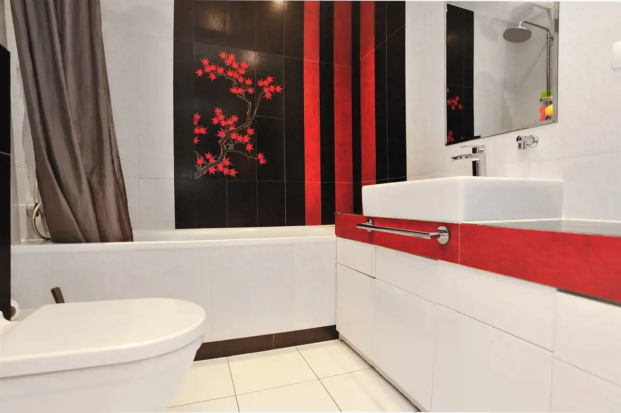 - Łazienka (4,9 m²) - wraz z zabudową meblową oraz wanną z prysznicem. Dodatkowo w łazience znajduje się piec gazowy kondensacyjny dwufunkcyjny firmy Saunier Duval Thelia Condens.