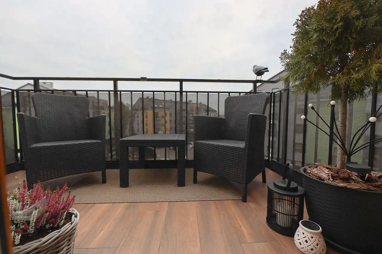 Przestronny balkon (4,5 m²) – idealny na poranną kawę lub wieczorny odpoczynek.