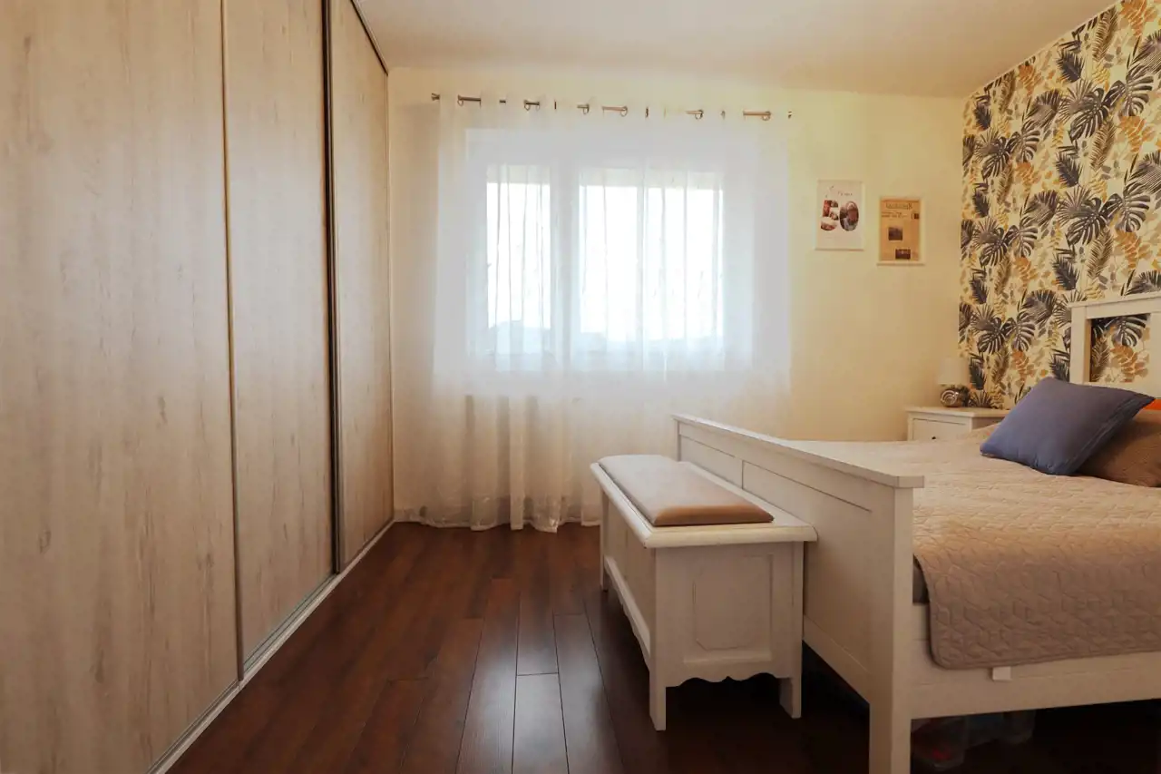 sypialnia z dużą szafą w zabudowie,