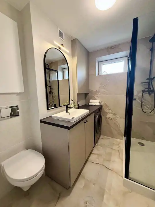 - Media Ogrzewanie: C.O. miejskie; Woda: ciepła - piecyk; Gaz: jest