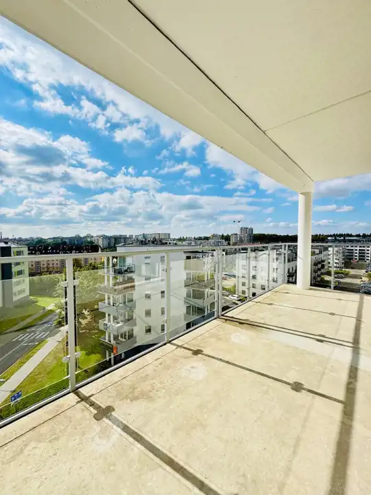 For sale: a modern 67.32 m² apartment with a large sunny terrace (approx. 16 m²), located on the top floor of a 2023 building in the Nowe Miasto district of Szczecin. Two bedrooms, a spacious living room with terrace access, a walk-in wardrobe, great view, high standard. Private garage in underground hall – PLN 60,000. Buyer pays no commission.