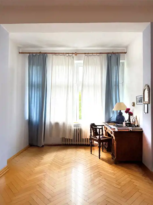 Na podłogach znajduje się oryginalna, odnowiona drewniana podłoga, która nadaje wnętrzom ciepła i charakteru.