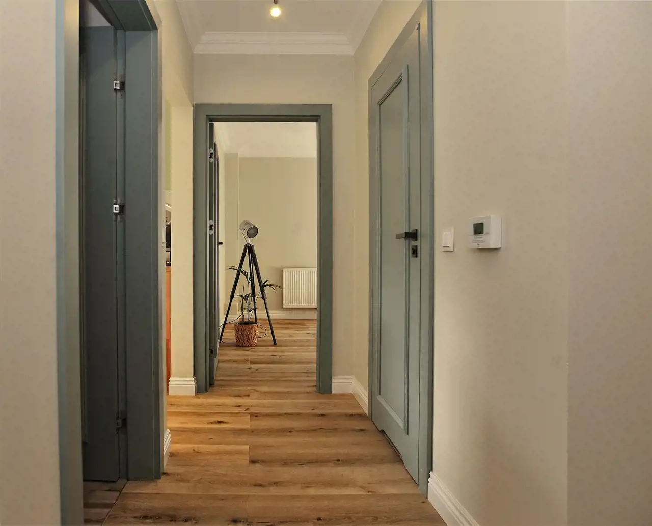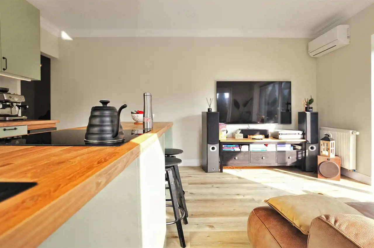 Wnętrze mieszkania zostało wykończone z dużą starannością i przy użyciu materiałów dobrej jakości. Całość utrzymana jest w nowoczesnym, ponadczasowym stylu. Dodatkowym atutem jest klimatyzacja, która znacząco podnosi komfort użytkowania, zwłaszcza w cieplejszych miesiącach.