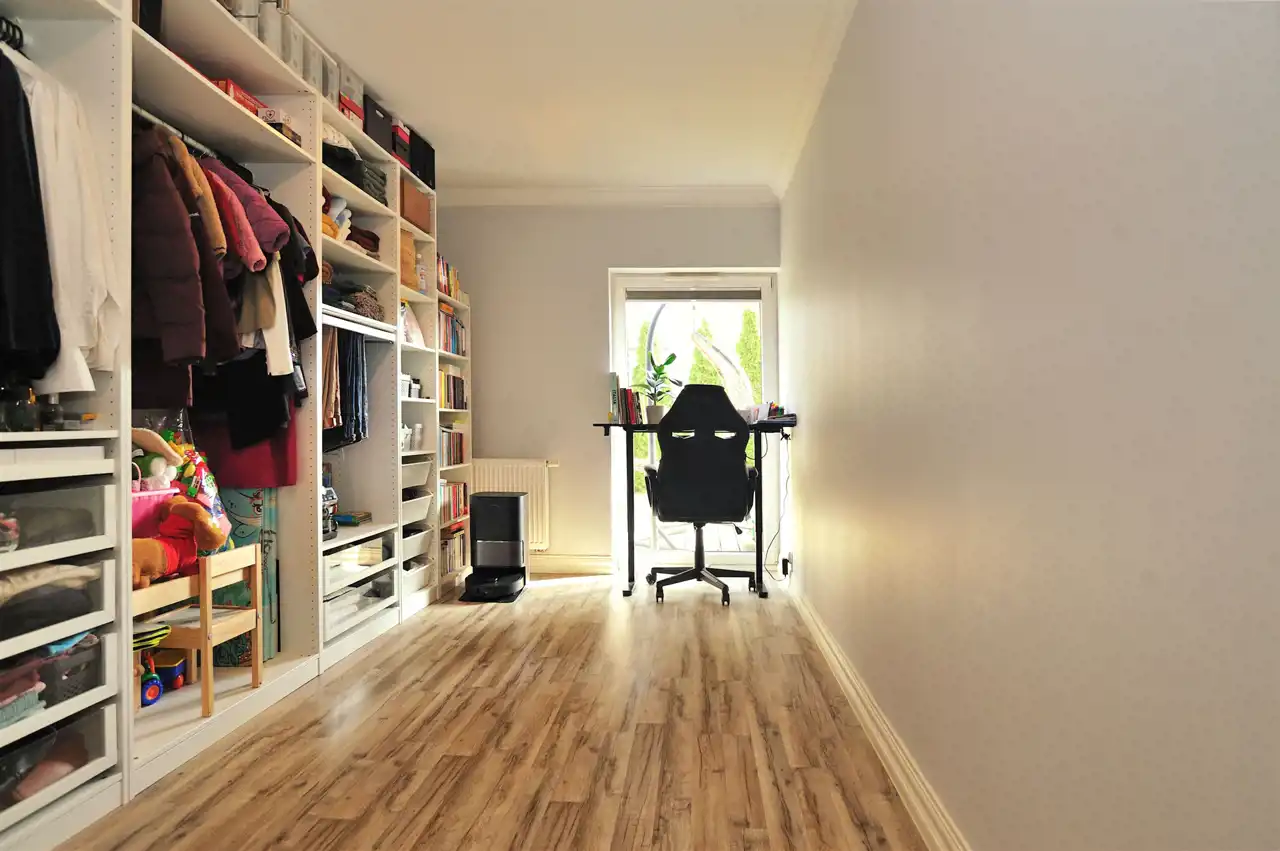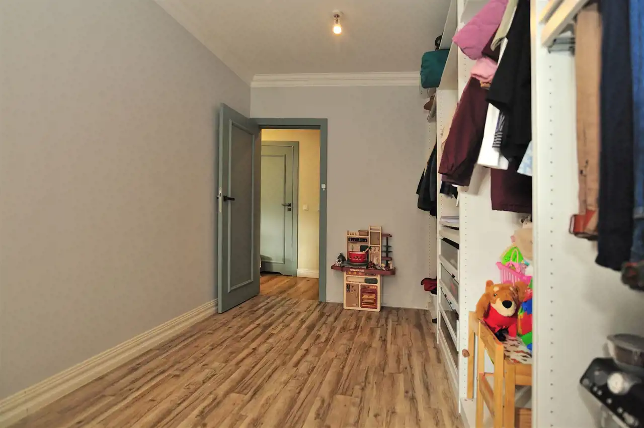 - dwóch komfortowych sypialni, (w jednej z nich obecnie urządzono garderobę – istnieje możliwość łatwego przywrócenia funkcji sypialni.)