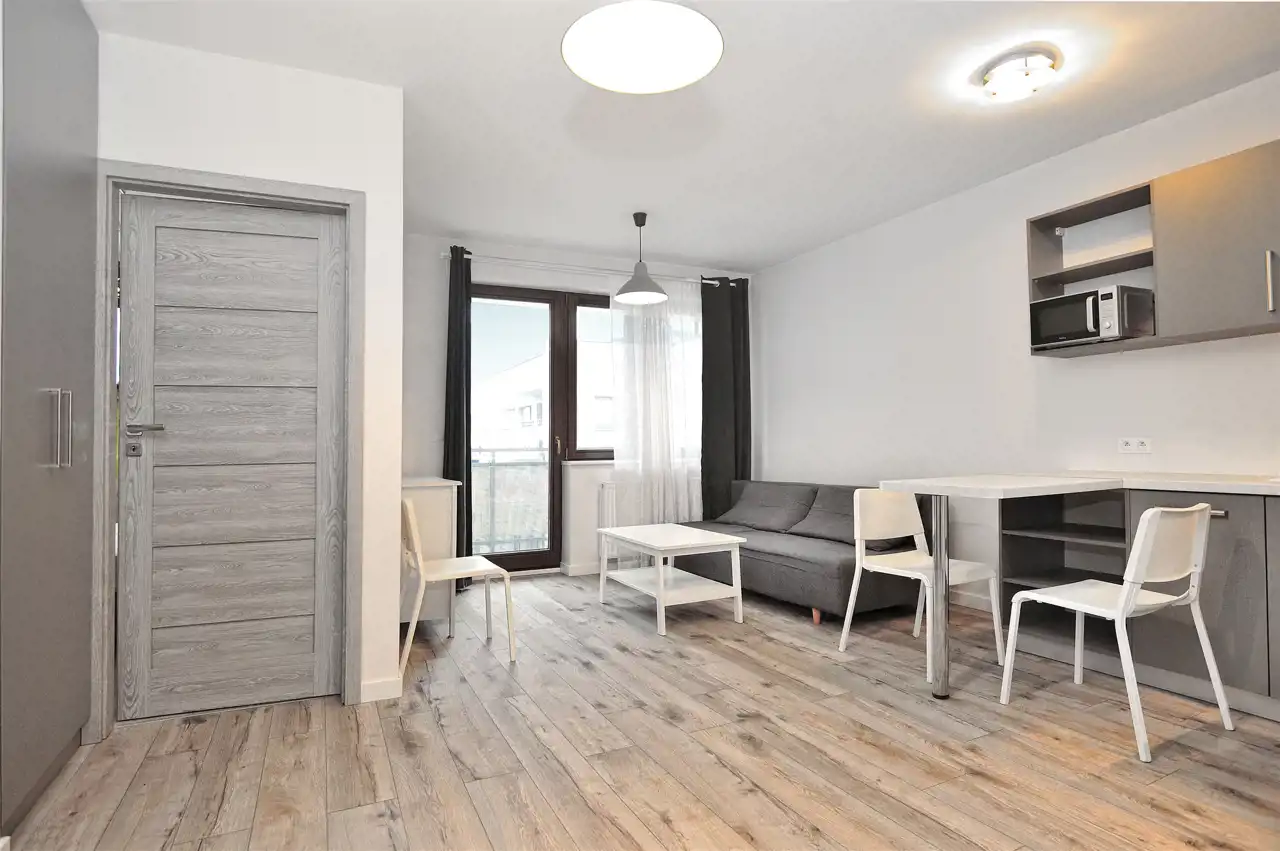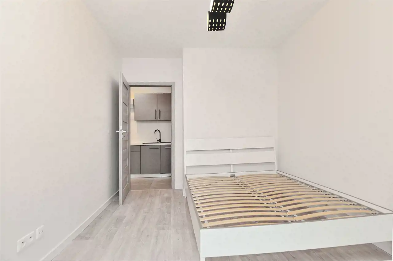 Dwie sypialnie z bezpośrednim wyjściem na duży taras – idealne miejsce do relaksu. Dodatkowo łazienka z kabiną prysznicową oraz praktyczny aneks kuchenny w korytarzu.