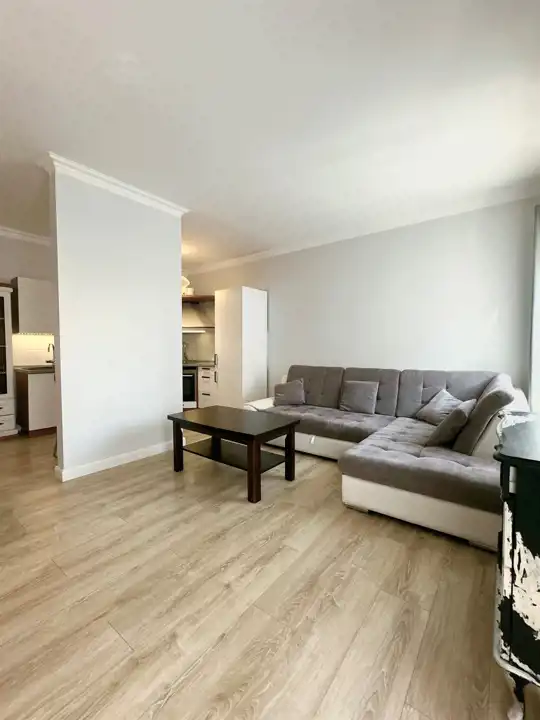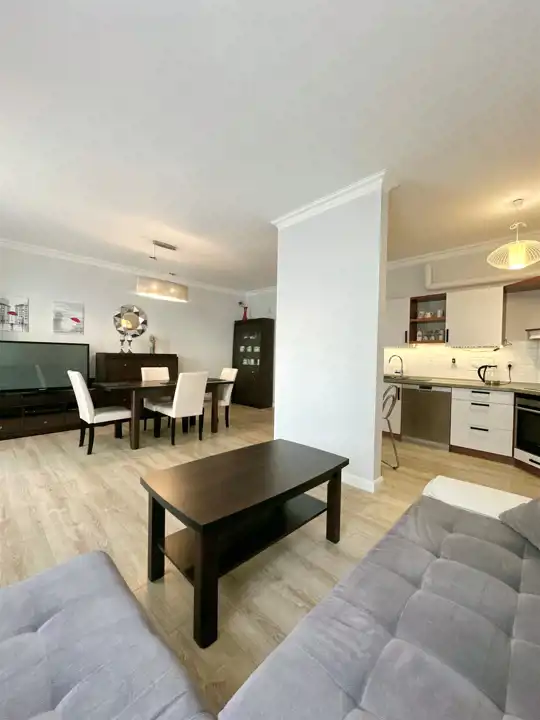 - przestronny salon z jadalnią, aneksem kuchennym oraz wyjściem na balkon,
