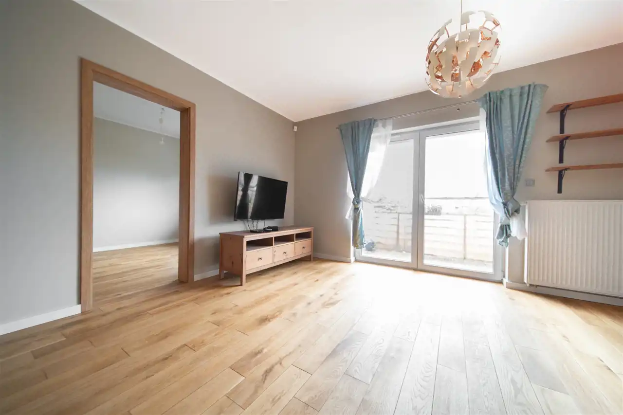 Dwupoziomowe mieszkanie o powierzchni użytkowej 81,7 m², położone na 1. piętrze nowoczesnej zabudowy wielorodzinnej z 2017 roku, w Mierzynie przy ul. Zacisznej 30. Lokal usytuowany jest w skrajnym segmencie szeregowca, co zapewnia kameralny charakter i większą prywatność.