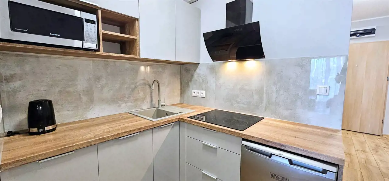 Do wynajęcia komfortowe 1 pok. z balkonem - na nowym osiedlu z 2020 roku - w świetnej lokalizacji, w cichym centrum Szczecina. Na powierzchnię ok. 32 m2 składają się: salon połączony z aneksem kuchennym z zabudową, wyposażoną w sprzęt AGD /zmywarka, płyta, piekarnik, lodówka, mikrofalówka/. Ładna łazienka z WC z kabiną prysznicową oraz pralką. Przedpokój wraz z zabudową typu Komandor. Ogrzewanie oraz ciepła woda z sieci lokalnej.