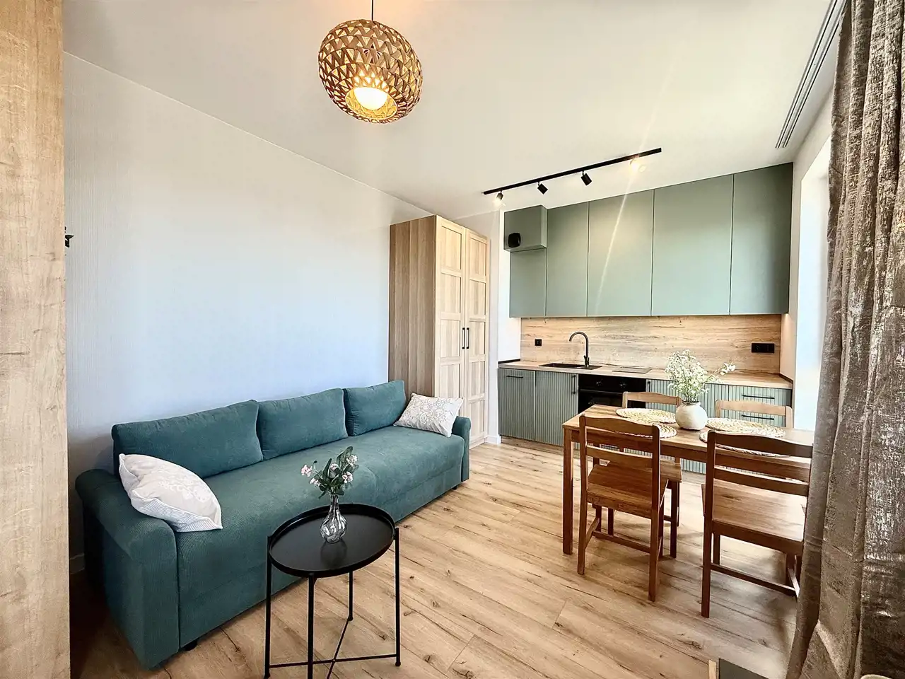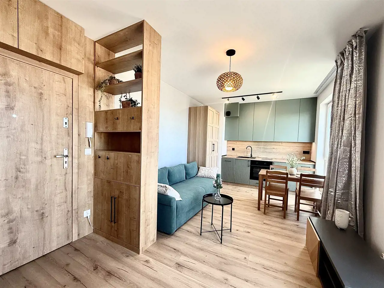 Na wynajem kawalerka zlokalizowana w budynku z 2025 roku 50m od przystanków tramwajowych i autobusowych.