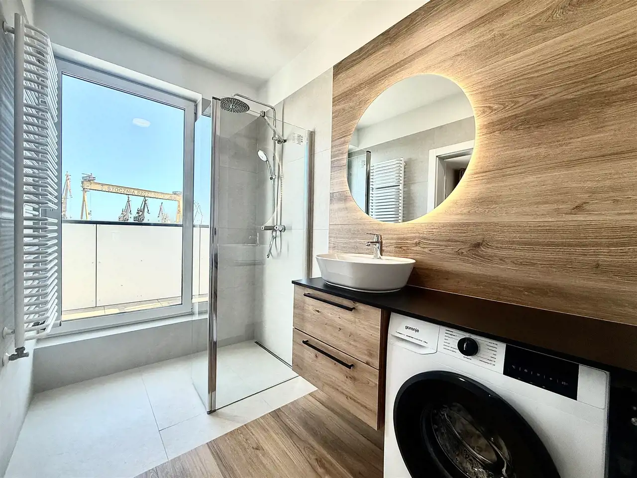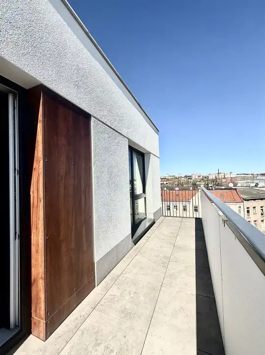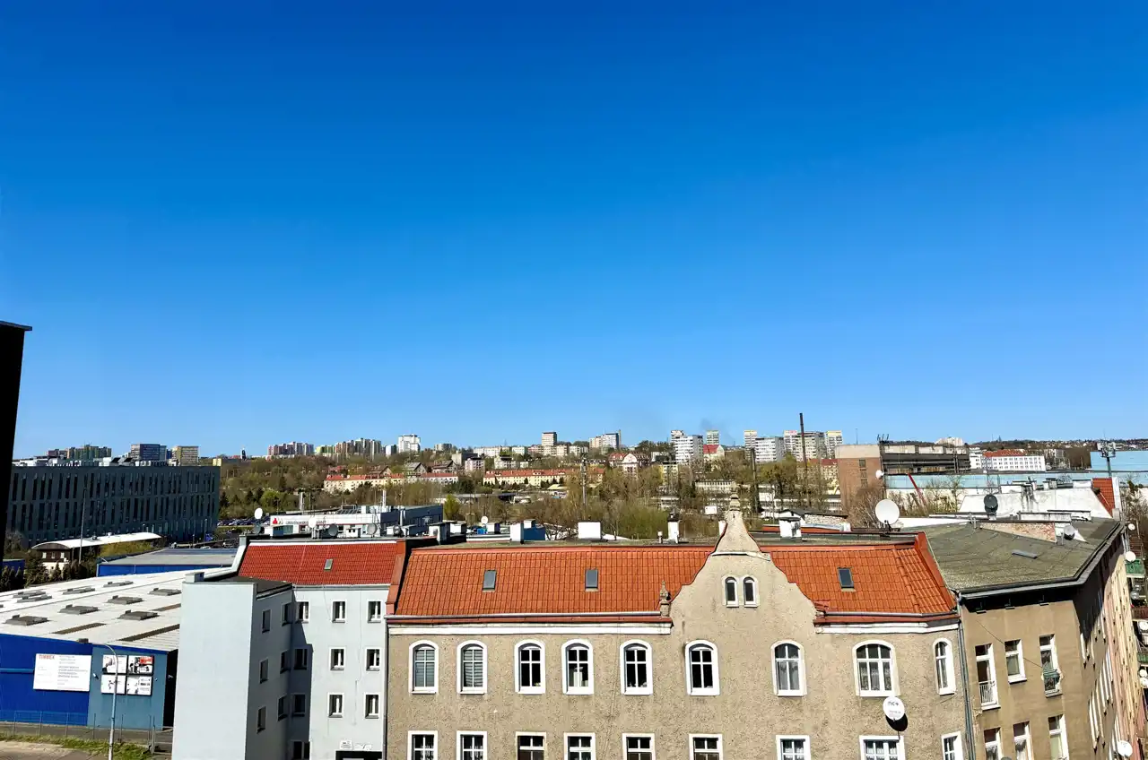 Na powierzchni 25m2 znajdziemy niezwykle jasny pokój z aneksem kuchennym oraz łazienkę z dużą kabiną typu walk in. Dodatkowo po całej długości mieszkania ciągnie się balkon, z którego widać Odrę. Jest to doskonałe miejsce do relaksu mimo mieszkania blisko centrum miasta.