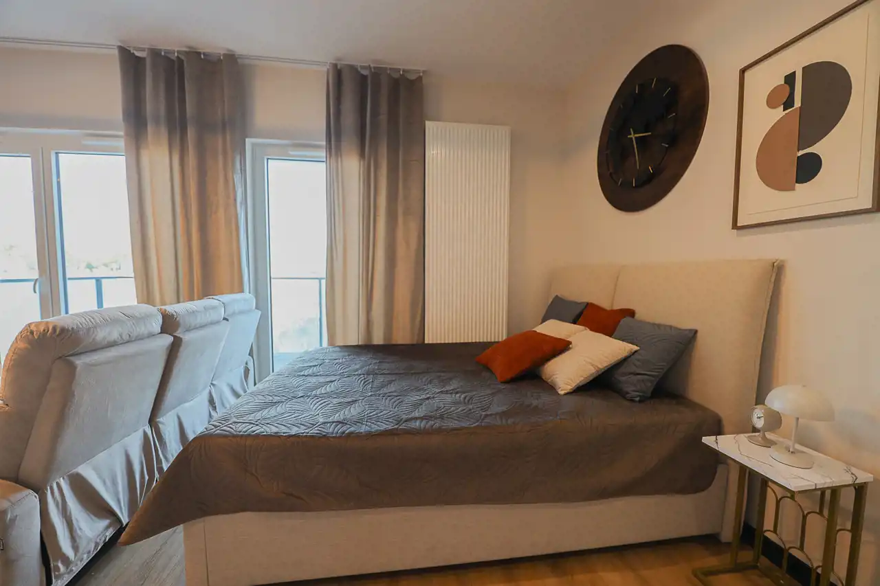 - W salonie rozkładana kanapa z funkcją relaksu oraz łóżko sypialniane