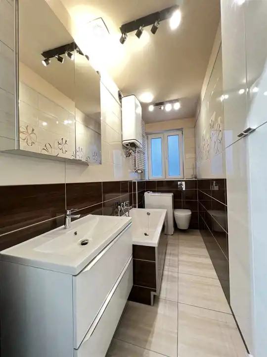 - Media Ogrzewanie: C.O. miejskie; Woda: bojler elektryczny; Gaz: jest