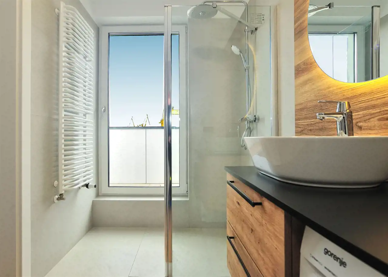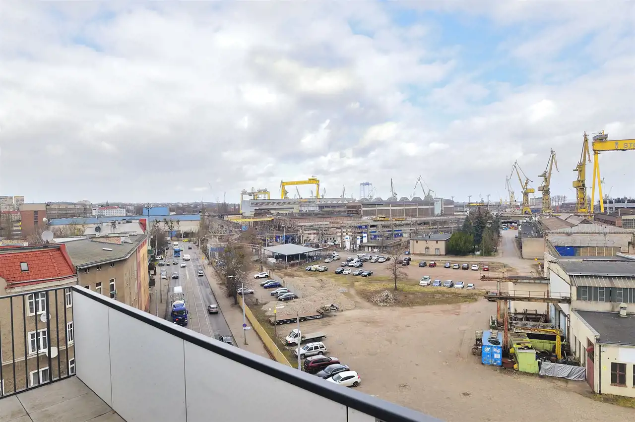 Oferta najmu komfortowej, nowej kawalerki z tarasem , z widokiem na Odrę i zabudowania stoczni.
