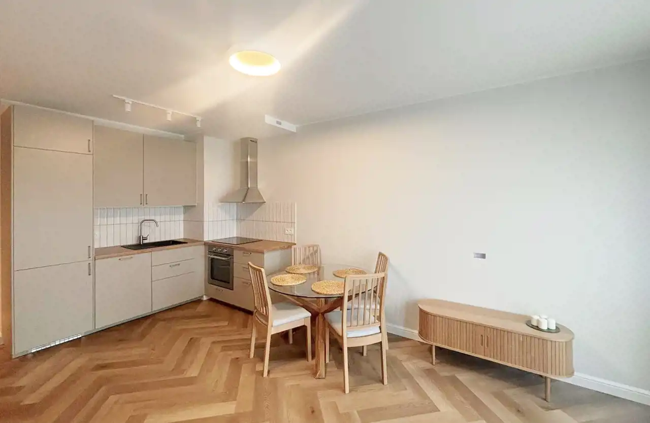 - jasnego pokoju z aneksem kuchennym, który stwarza idealną przestrzeń do wypoczynku i gotowania,