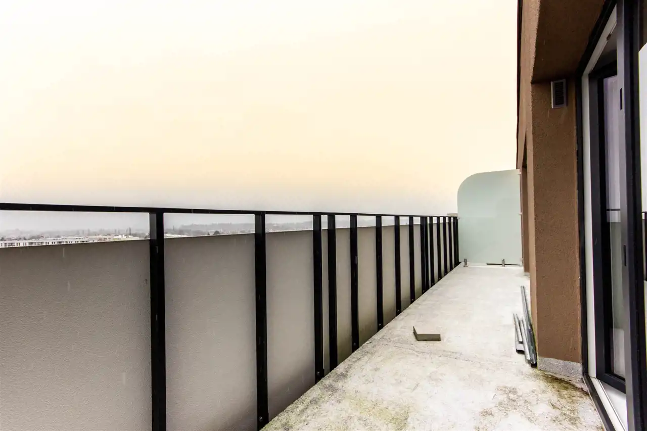 Na taras wyjście zarówno z salonu, jak i z sypialni. Z góry rozpościera się otwarta panorama miasta.