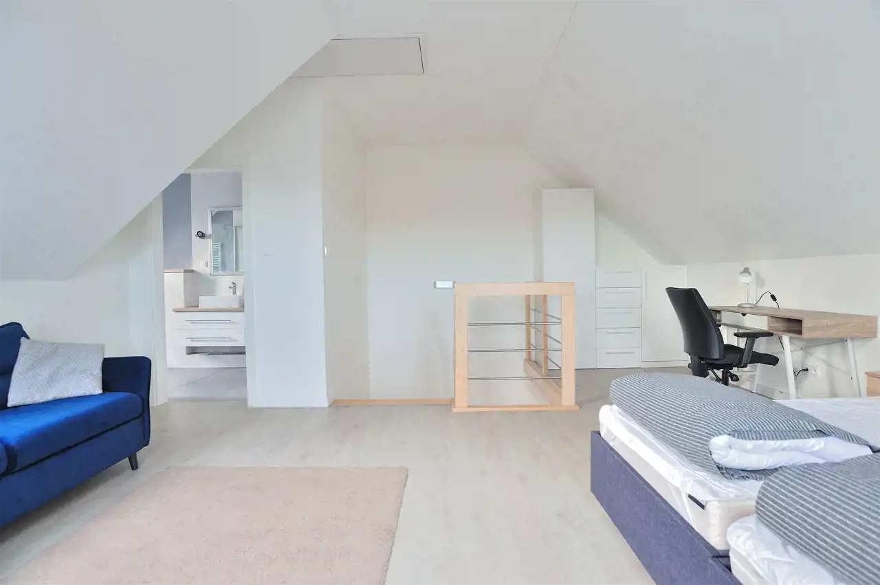 Jest możliwość adaptacji i podzielenia górnej przestrzeni na dwa pokoje oraz korytarz. / wtedy cena 4500tys.mc/