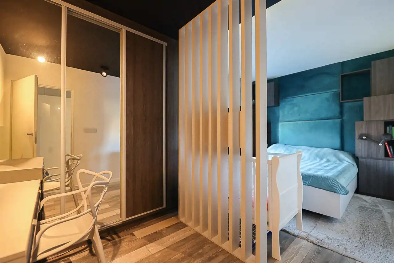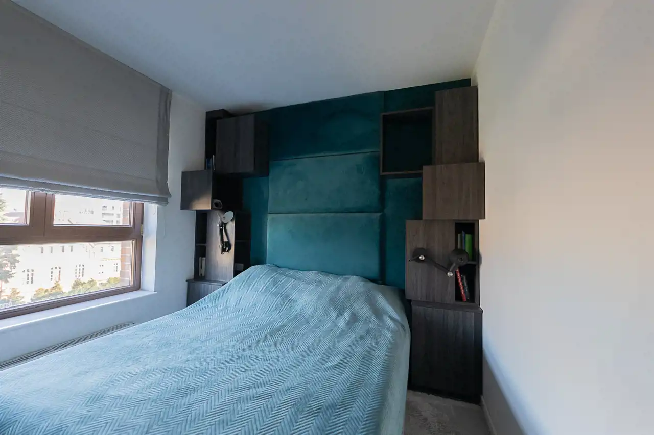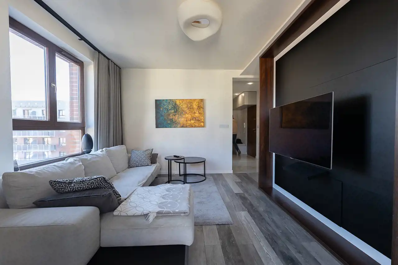 Mieszkanie zostało wykończone w bardzo wysokim standardzie, z dbałością o detale oraz funkcjonalność. Wnętrze oferuje liczne zabudowy oraz dużą ilość miejsca do przechowywania, co zapewnia wygodę codziennego użytkowania.
